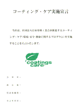 コーティング・ケアの実施にご賛同頂いた会員各社には社内、地域社会、株主に環境・安全・健康の管理活動をアピールしていただくために宣言書をご提出いただいています。(実際の宣誓書はA4大)