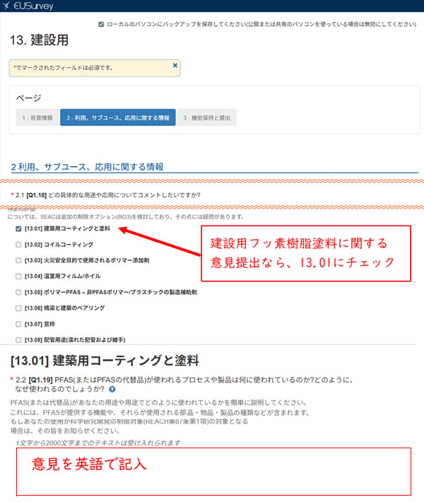 EUのPFAS制限提案に対するパブコメをウェブで提出することができます。